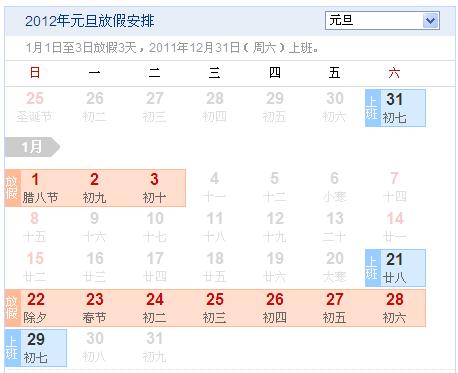 2012年放假安排時(shí)間表 2012年元旦放假安排