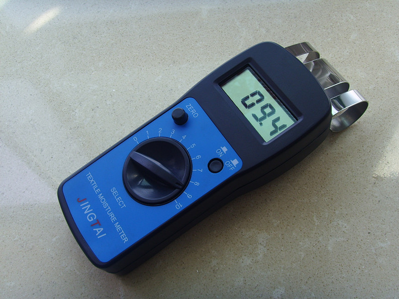 該儀器測(cè)定各種皮料、皮革、服裝、紗線時(shí),只需將儀器頂端的感應(yīng)器輕輕壓在被測(cè)量物體表面即可,感應(yīng)器處電磁波即掃描入被測(cè)量物體內(nèi),儀器顯示屏立刻顯示出被測(cè)量物的水分。