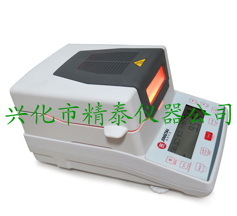 傳統(tǒng)的水分測定一般是采用烘箱干燥法,一個樣品的測試需要兩三個甚至四五個小時,而且還需通過天平稱重、人工計算,才能得出樣品的水分值(含水率)。烘箱法水分測定的低效率,不能夠適應(yīng)高節(jié)奏的企業(yè)生產(chǎn)需要。精泰牌JT-K系列快速水分測定儀是興化市精泰儀器儀表有限公司新研制的大功率水分測定儀器,采用大效率的烘干加熱器-高品質(zhì)的環(huán)狀鹵素?zé)簦瑢悠愤M行快速、均勻的加熱,樣品的水份持續(xù)不斷的被烘干。整個測量過程,儀器全自動的實時顯示測量結(jié)果:樣品重量、含水量、含固量、測定時間、加熱溫度等。